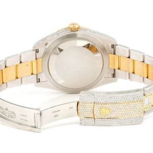 ICED OUT ROLEX DATEJUST 36MM TWO TONE BLACK DIAL AUTOMATIC WATCH 16.00CT