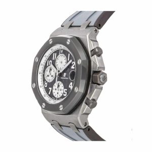 The timepiece boasts a robust 44mm diameter case. encapsulating a vivid green dial with Arabic numerals indices. offering a modern touch to this iconic design. Paired with a comfortable. adjustable rubber strap that fits all sizes. the watch remains as stylish as it is functional. Durability is key. with the watch passing a 30m water resistance test. However. the manufacturer advises against swimming while wearing the watch. Protected by a 2-year International United Luxury warranty. this AP Royal Oak Offshore Ceramic Green Black Replica Watch is a perfect blend of elegance. reliability. and precision – a stunning statement piece for any watch aficionado.