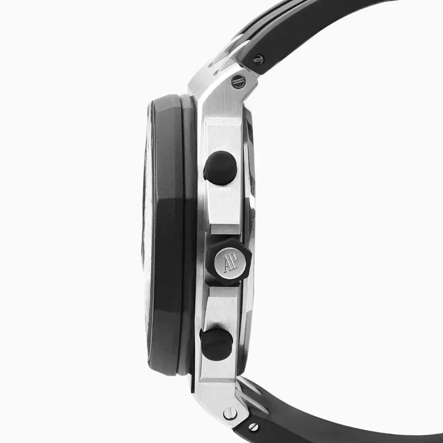 The Royal Oak Offshore White Replica from Audemars Piguet is a striking watch. It features a 904L stainless steel case with a black bezel and a sapphire crystal. The movement is an automatic AP 2713 caliber with a power reserve of 60 hours and a precision of (-3/+3 sec/day) within COSC certification limits. The dial is nicknamed the Méga Tapisserie and is white with Arabic numerals and 904L stainless steel hour markers. The bracelet is made of rubber and is adjustable for all sizes with a 904L stainless steel deployment clasp.