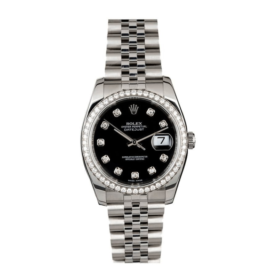 This Rolex Datejust 279384RBR White Gold Automatic Dark Grey Diamond Dial Jubilee Replica is a stunning watch. It features a 904L stainless steel case and bezel. with a sapphire crystal and a Jubilee bracelet made of the same material. The dial is dark grey with gem-set indices and 904L stainless steel hour markers and hands. The movement is an automatic caliber 2236 with a 60-hour power reserve and precision within COSC certification limits.