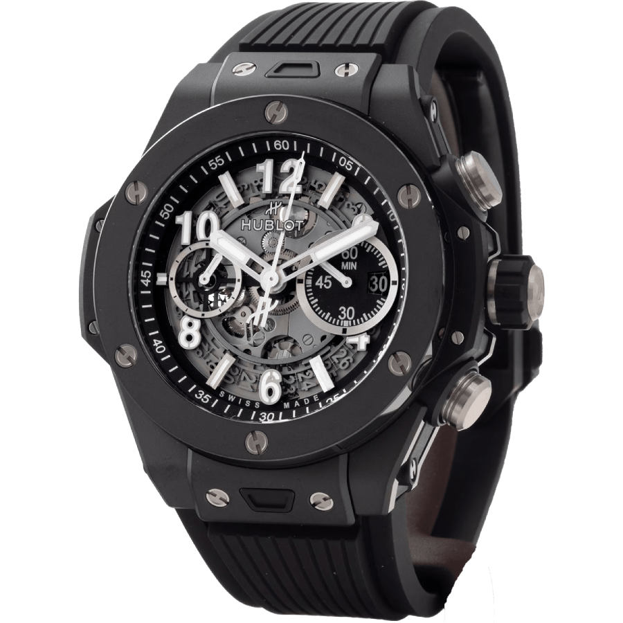 The Hublot Big Bang Unico Sapphire All Black 411.JB.4901.RT Replica is a luxury watch. It features a black resin case and bezel. with a black rubber bracelet and a sapphire crystal. The movement is an automatic HUB1242 caliber with a power reserve of 60 hours and a precision of (-3/+3 sec/day) within COSC certification limits. The dial is black with mixed indices and 904L stainless steel stick hour markers and hands. The watch is also water-resistant up to 30m.
