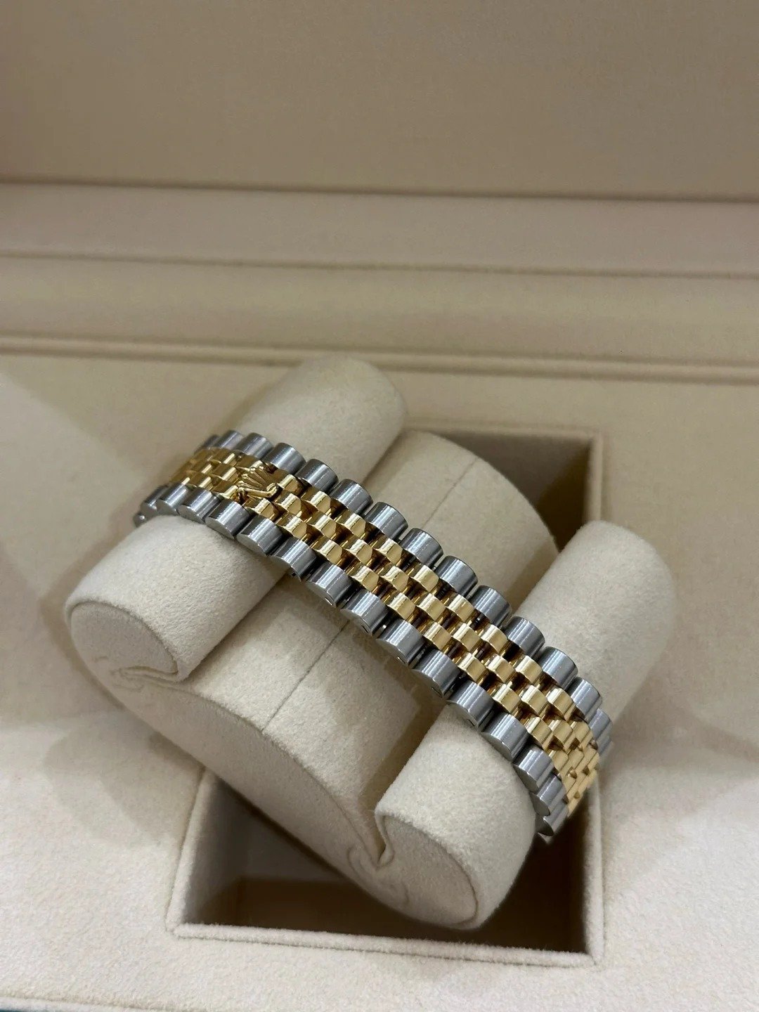 Gold is coveted for its lustre and nobility. Steel reinforces strength and reliability. Together, they harmoniously combine the best of their properties. A true Rolex signature, Rolesor has featured on Rolex models since the early 1930s, and was trademarked as a name in 1933. It is one of the prominent pillars of the Oyster collection.