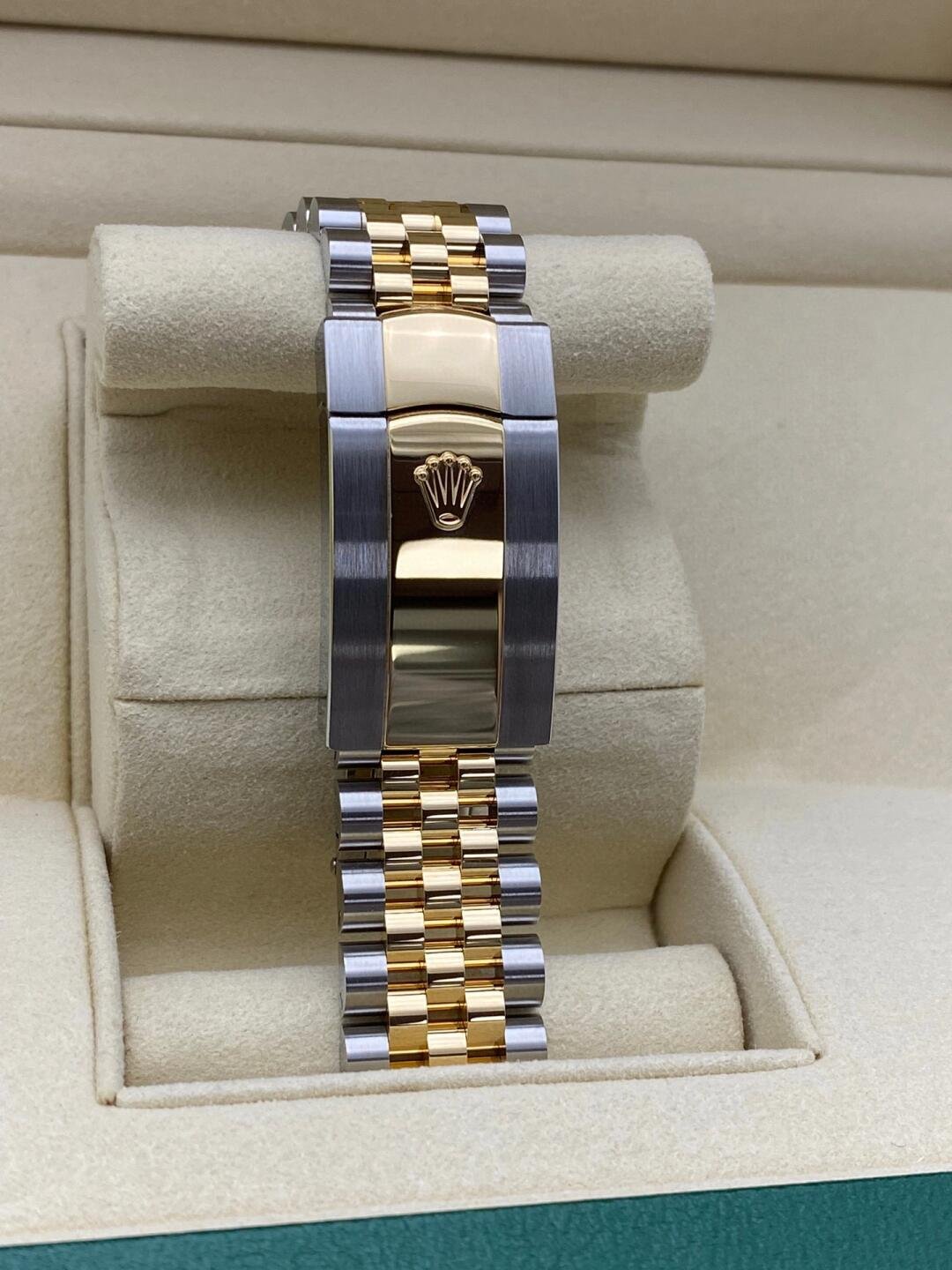 – Polished Solid 18k Yellow Gold with Brushed 904L Oystersteel Stainless Steel Jubilee Bracelet