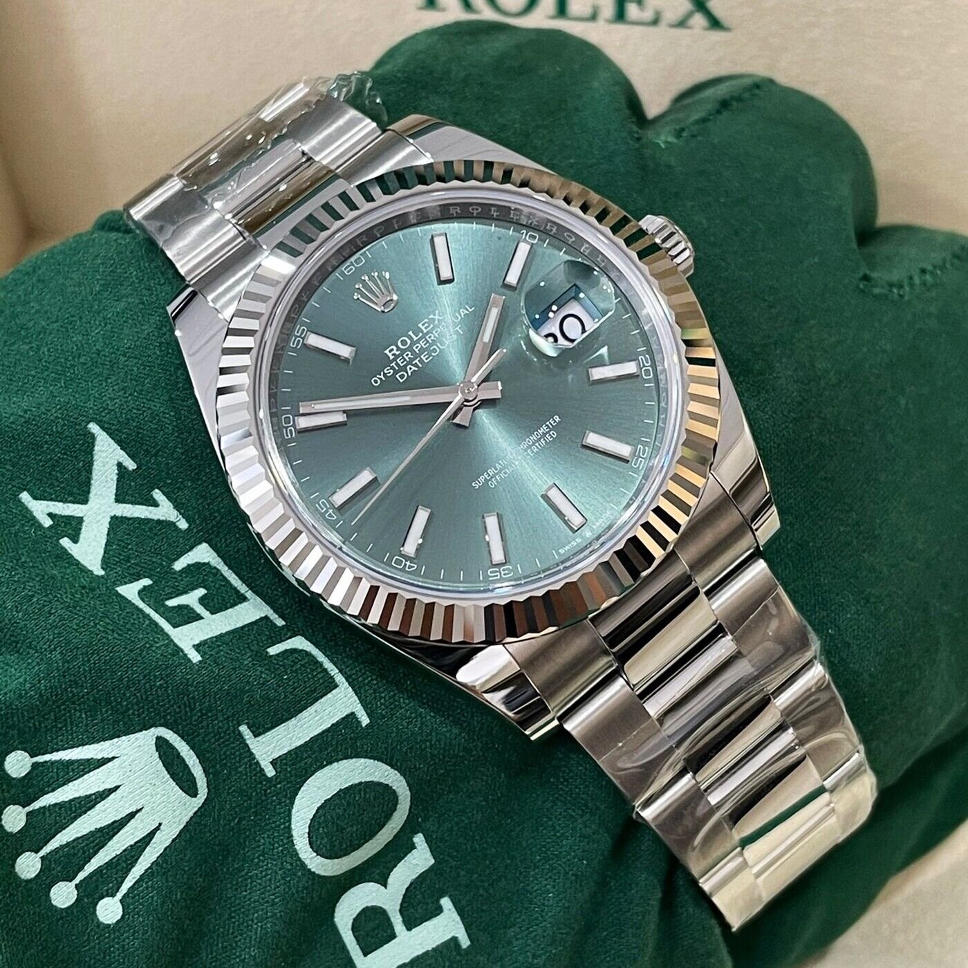 Just released by Rolex with this stunning Mint Green dial, this is by far our favourite 41mm Datejust.