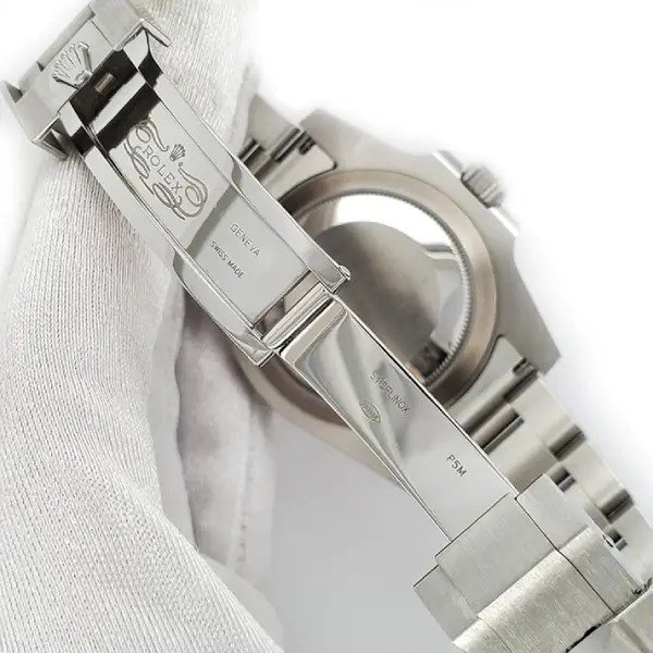 The watch is paired with a robust stainless steel Oyster bracelet. known for its comfort and durability. It is equipped with a folding Oysterlock clasp and a Glidelock extension system. allowing for precise adjustments to ensure a perfect fit. whether worn daily or over a wetsuit during diving.