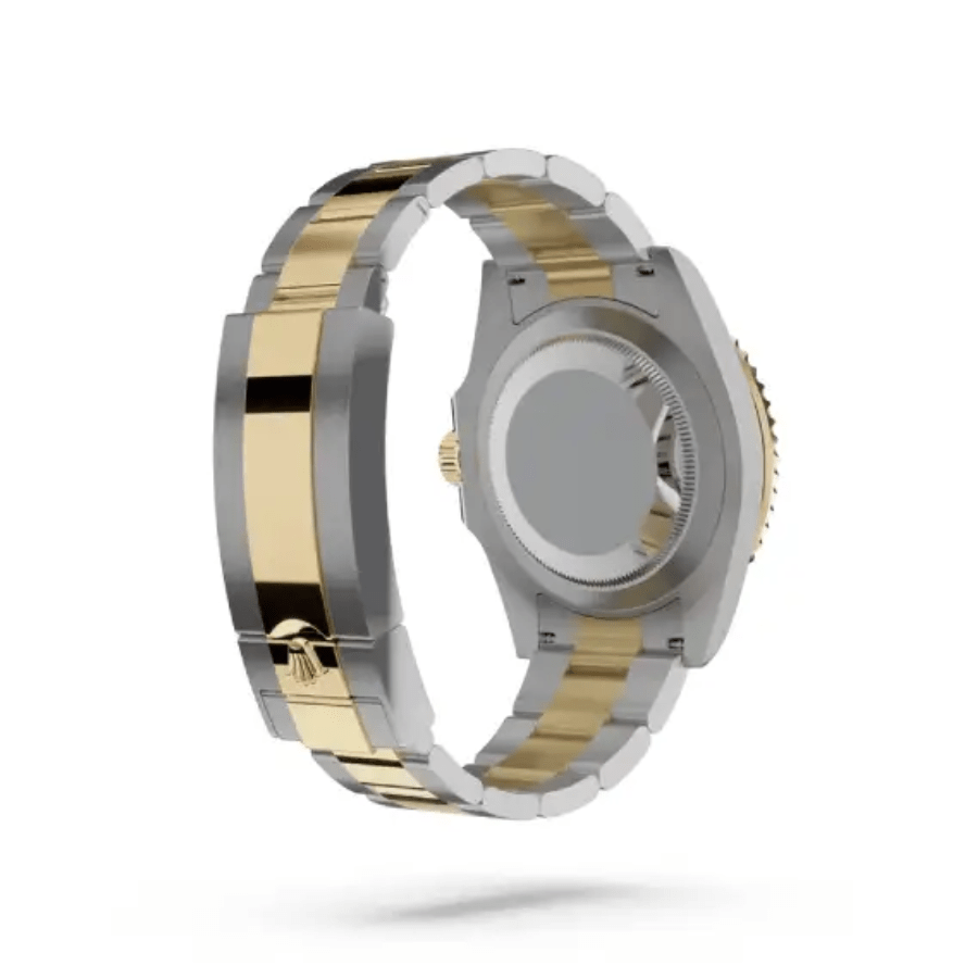 The two-tone bezel. a harmonious blend of yellow gold and caramel. further enriches its luxurious appeal. Meanwhile. the bracelet crafted from the same 904L stainless steel and coupled with a fold clasp in steel and yellow gold ensures not only adjustability but also a snug. secure fit on your wrist. This bracelet’s seamless integration with the case reflects Rolex’s commitment to both form and function.