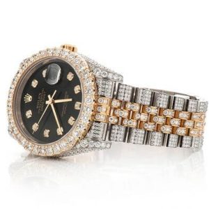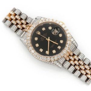 ICED OUT ROLEX DATEJUST 36MM TWO TONE BLACK DIAL AUTOMATIC WATCH 16.00CT