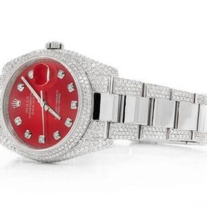 Iced Out Rolex Datejust 36MM SILVER RED DIAL AUTOMATIC MOISSANITE WATCH 14.00CT