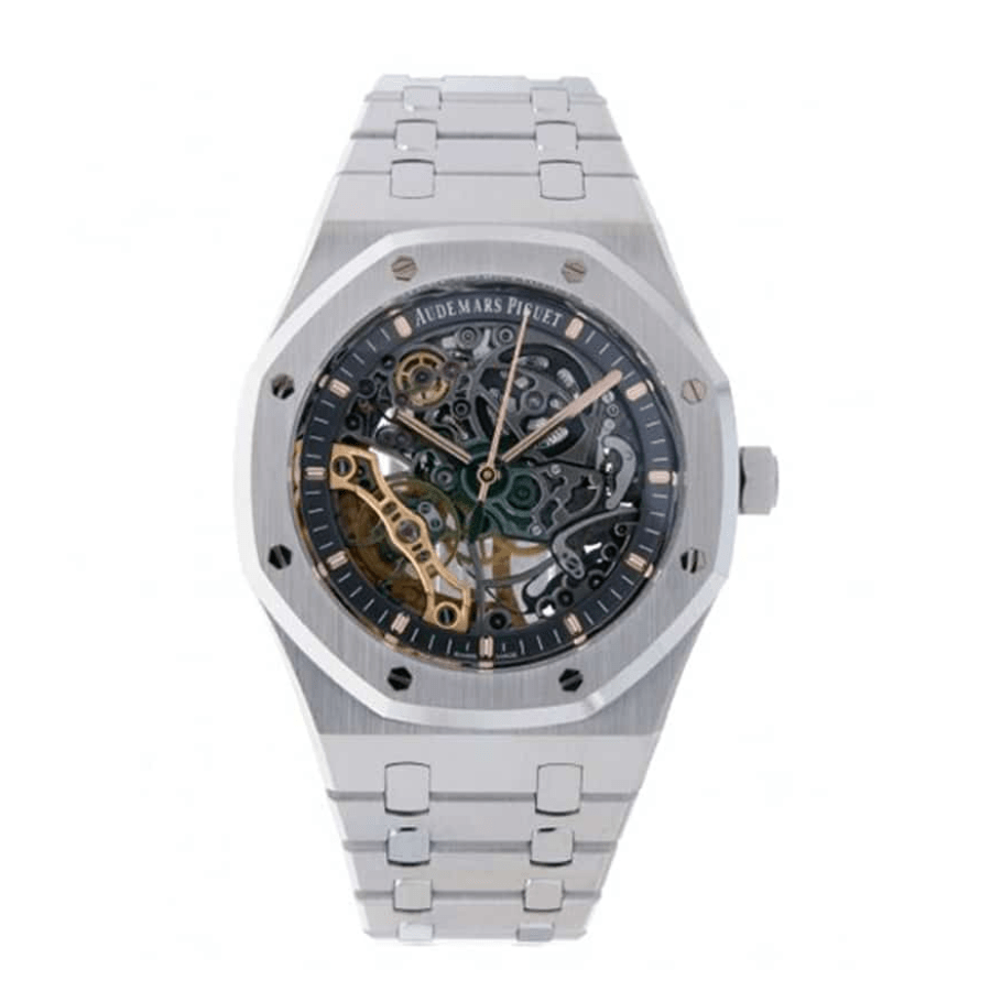 The Audemars Piguet Royal Oak 15500OR.OO.1220OR.01 Replica is a luxury watch crafted with 904L stainless steel in a rose gold color. The case is 41.00 mm in size and features a sapphire crystal. The bracelet is also crafted from 904L stainless steel and is adjustable for all sizes. The dial is black with a stick. dot indices. and Royal Oak hour markers.