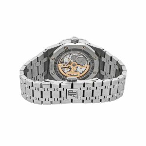 Introducing the Audemars Piguet Royal Oak 26574BA.OO.1220BA.01. a masterpiece that combines elegance and innovation. Powered by the automatic Caliber AP 5134 movement. this timepiece offers a power reserve of approximately 60 hours. ensuring reliable performance for days on end. With a precision of (-3/+3 sec/day). it meets the strict standards of COSC certification. delivering impeccable timekeeping accuracy. The sweeping motion of the second hand adds a touch of fluidity to the watch’s overall allure.The 44.00 mm case is crafted from ceramic. showcasing a stunning rose gold color that exudes sophistication. The black bezel. made from 904L stainless steel. complements the case beautifully. Protecting the dial is a scratch-resistant sapphire crystal. providing exceptional clarity. The pink gold dial features stick/dot indices and hour-markers made from 904L stainless steel. while the stick-shaped hands further enhance the watch’s sleek aesthetic.