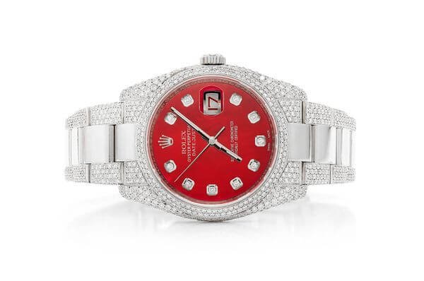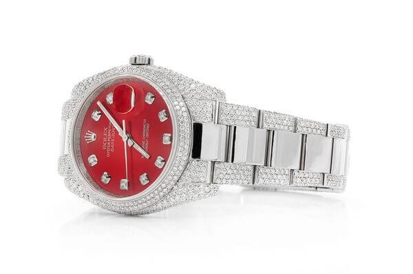 Iced Out Rolex Datejust 36MM SILVER RED DIAL AUTOMATIC MOISSANITE WATCH 14.00CT
