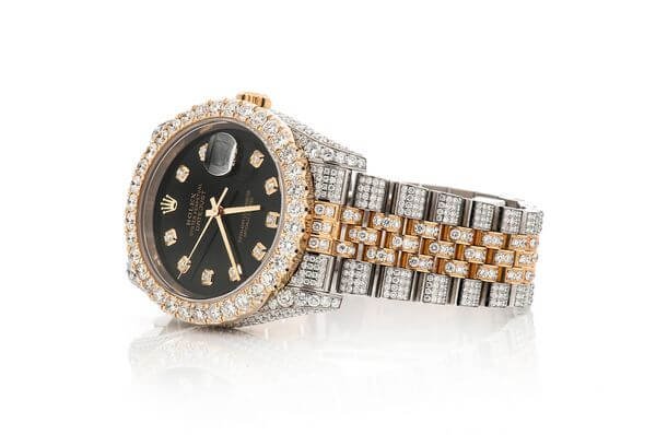 This Iced out Rolex DateJust is made of Two Tone and has a 36mm case size with 16.00ctw of Moissanite diamonds. Our expert watchmakers have serviced this watch inside and out to Rolex quality standards. This watch comes with an Rolex box.