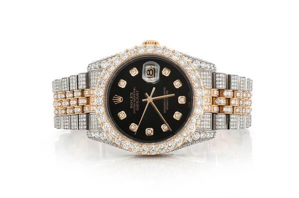 ICED OUT ROLEX DATEJUST 36MM TWO TONE BLACK DIAL AUTOMATIC WATCH 16.00CT