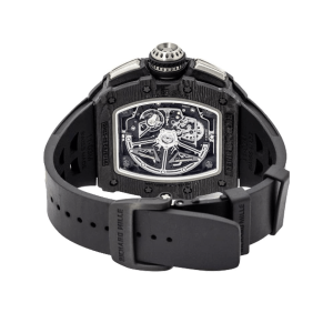 At the core of the RM 35-01 Green is its skeletonized movement. housed within a 44.5mm tonneau-shaped case made from Carbon TPT® and Green Quartz TPT®. This advanced material not only enhances the watch’s visual appeal but also provides exceptional strength and shock resistance. making it ideal for extreme conditions. The vibrant green Quartz TPT® bezel and caseback further highlight its sporty and futuristic design.