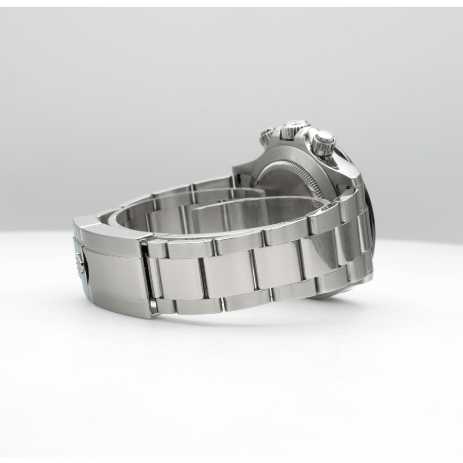 The Rolex Blaken Daytona Cosmograph Black Dial 116610 is a luxurious watch that is sure to impress. It features a 904L stainless steel case and bezel. with a black color that is sure to stand out. The movement is an automatic Rolex 4030 caliber. with a power reserve of 60 hours and precision of -3/+3 seconds per day within COSC certification limits. The bracelet is also made of 904L stainless steel. with adjustable links for all sizes and a folding clasp.