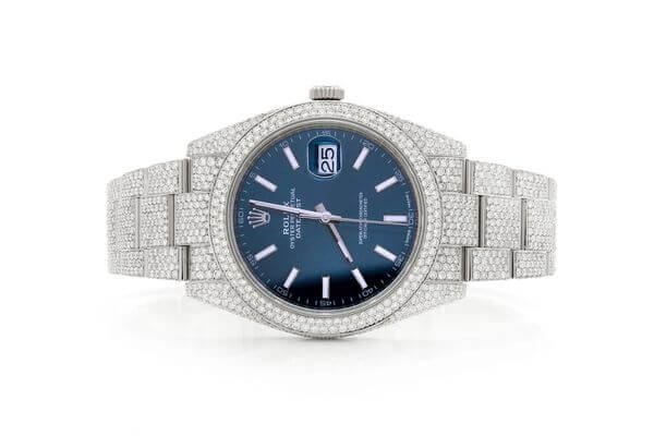 ROLEX ICED OUT DATEJUST 41MM BLUE DIAL AUTOMATIC STAINLESS STEEL WATCH MOISSANITE 21.00CT