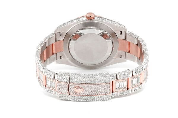 This Rolex Iced out watch DateJust is made of Two-Tone and 41mm with 20.00ctw of Moissanite diamonds.This watch inside and out to Rolex quality standards.This watch comes with an Rolex box.